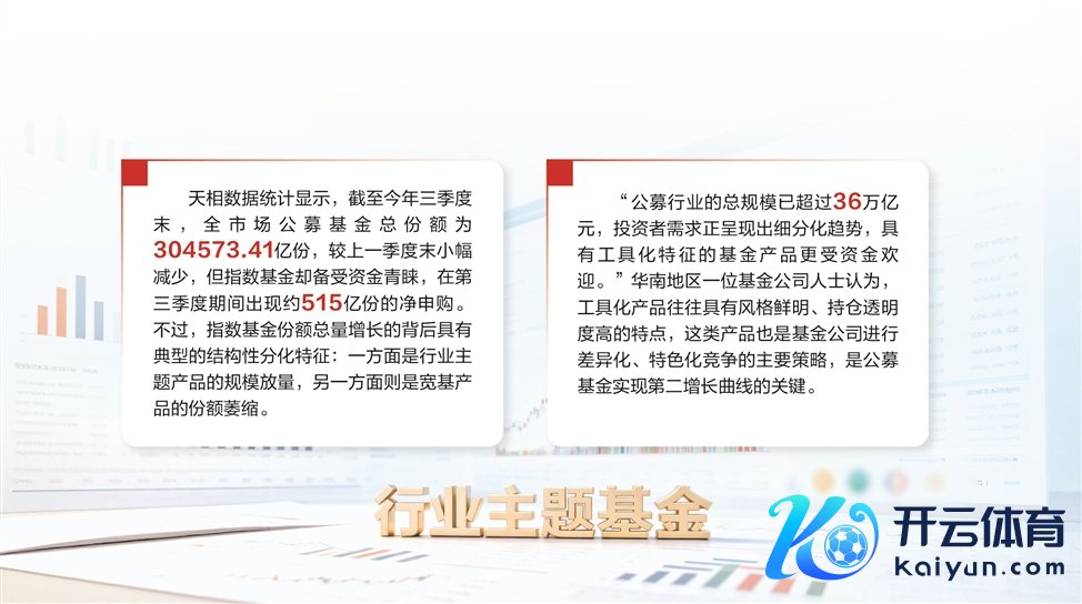 国信证券以为,公募行业器具化的发展是跟着股票阛阓灵验经过耕作开云体育,逾额收益挖掘愈发可贵,富饶翻新相识的基金公司因此加大干系指数家具的研发,补全指数家具谱系,更多行业主题类的基金家具被挖掘,这些家具具有较高的流动性和透明度,适当匹配各式投资计策,以得志不同细分需求的很是场景。