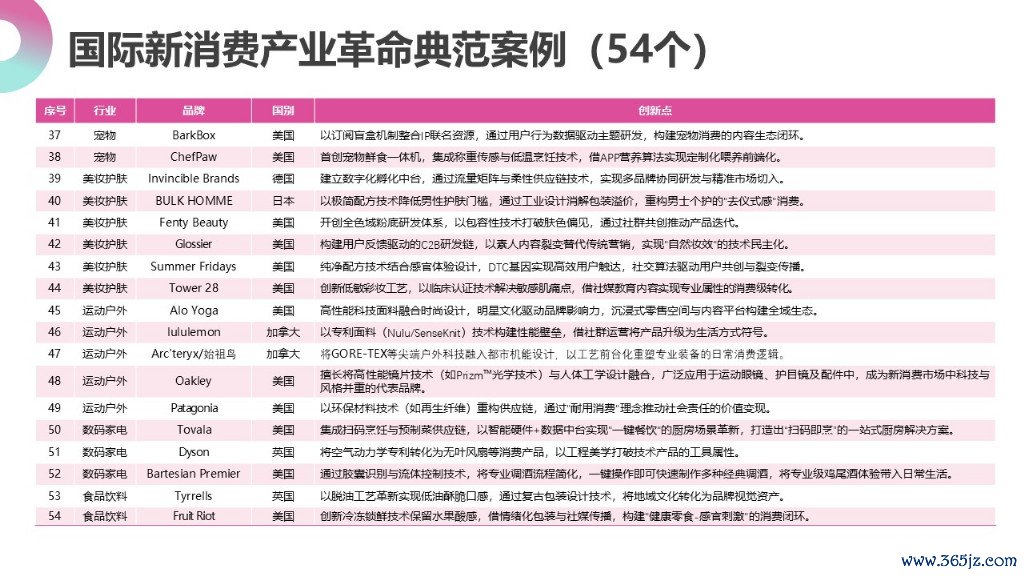 通过对典范案例的深入料想,咱们将全球新消耗产业竞争力提取为7个脾气: