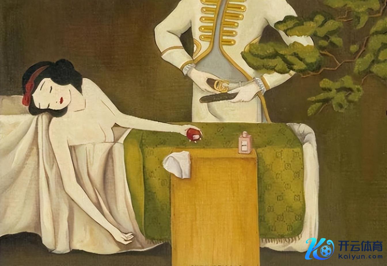家喻户晓,白雪公主是被一位超逸的王子的吻叫醒的。但是在陈韦伶的画作中,却展现了王子的另一面。