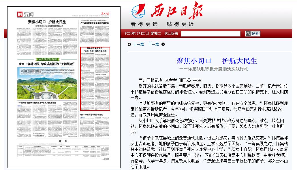 从小切口动手科罚全球急难愁盼,当先要找准找实全球身边的痛点、难点、堵点问题。怀集残联对准的小切口,除了让残疾东谈主老有所依,还要让残疾东谈主幼有所学、业有所成。