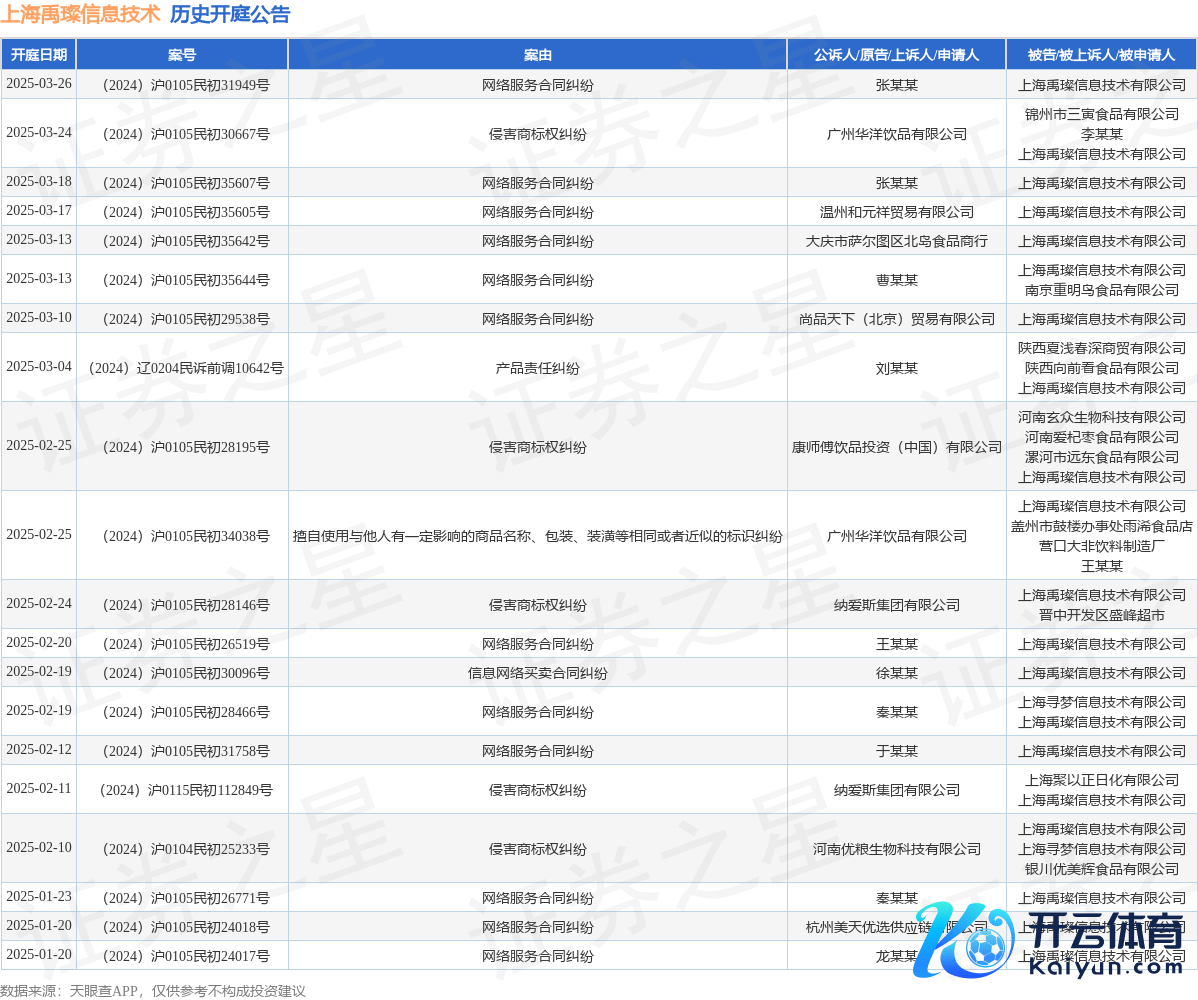本站音信,凭据天眼查APP表露,近日公布了一则上海禹璨信息本领有限公司当作被告/被上诉东谈主的开庭公告,详备执行如下: