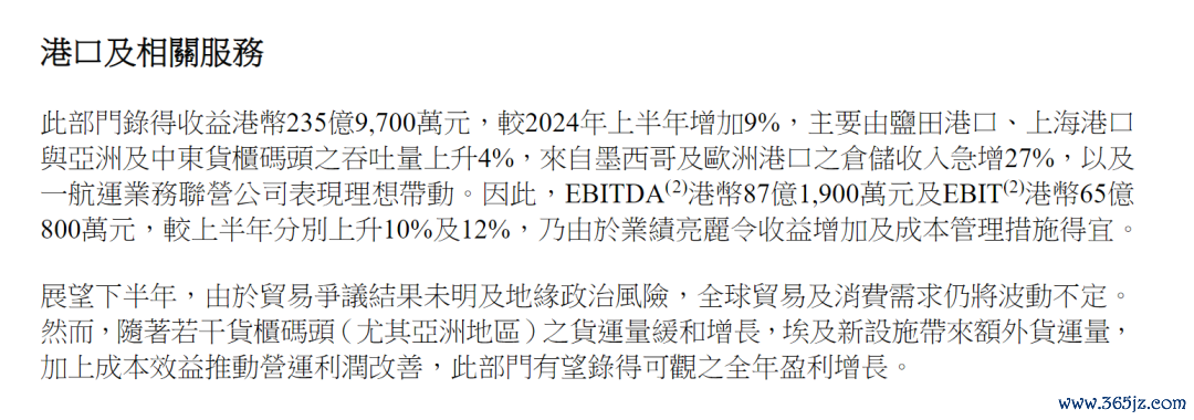 长和暗示,由于交易争议效用未明及地缘政事风险,全球交易及破费需求瞻望仍将波动。可是,跟着亚洲地区些许货柜船埠的货运量呈现轻易增长,埃及新智商带来畸形货运量,加上成本效益推动营运利润改善,该部门全年仍有望收尾可不雅的盈利增长。